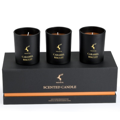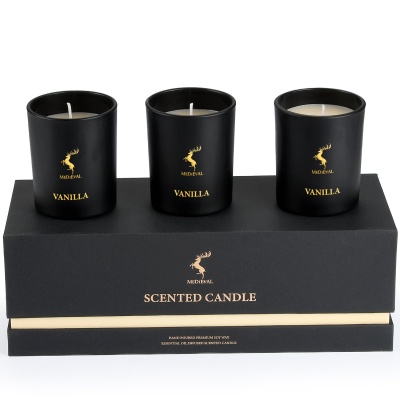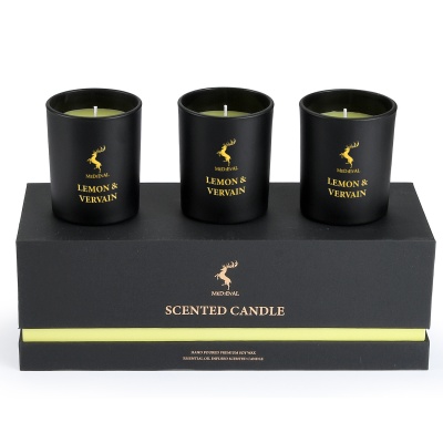 SUBMIT INQUIRY Contact USThis 3-pack scented candle gift set is the perfect choice for building your brand identity or for seasonal gifting. The set includes three 5oz scented candles, each housed in an elegant matte black glass jar and presented in a minimalist custom gift box. Each set can be themed around a single fragrance (e.g., "Lavender" or "Lemon Vervain") and coordinated with a matching color accent on the packaging. As a professional OEM source factory, we offer a complete private label service, from scent and label design to bespoke gift box creation, helping you build a high-end, cohesive brand collection.